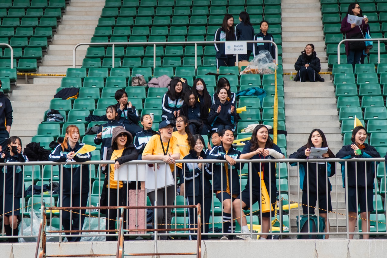 The atmosphere was electric from the outset. The House parade set the tone, as each House made its way around the track – a vibrant display of pride, unity, and identity. With a strong turnout from parents, particularly impressive for a midweek event, the day had a genuine community feel that elevated it beyond just a school competition. Ameliya Pak (Year 8, Rupert Brooke) led the school in the school song As We Stand, conducted by Mr Sach-Keen – a brilliant moment that brought everyone together.